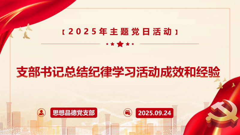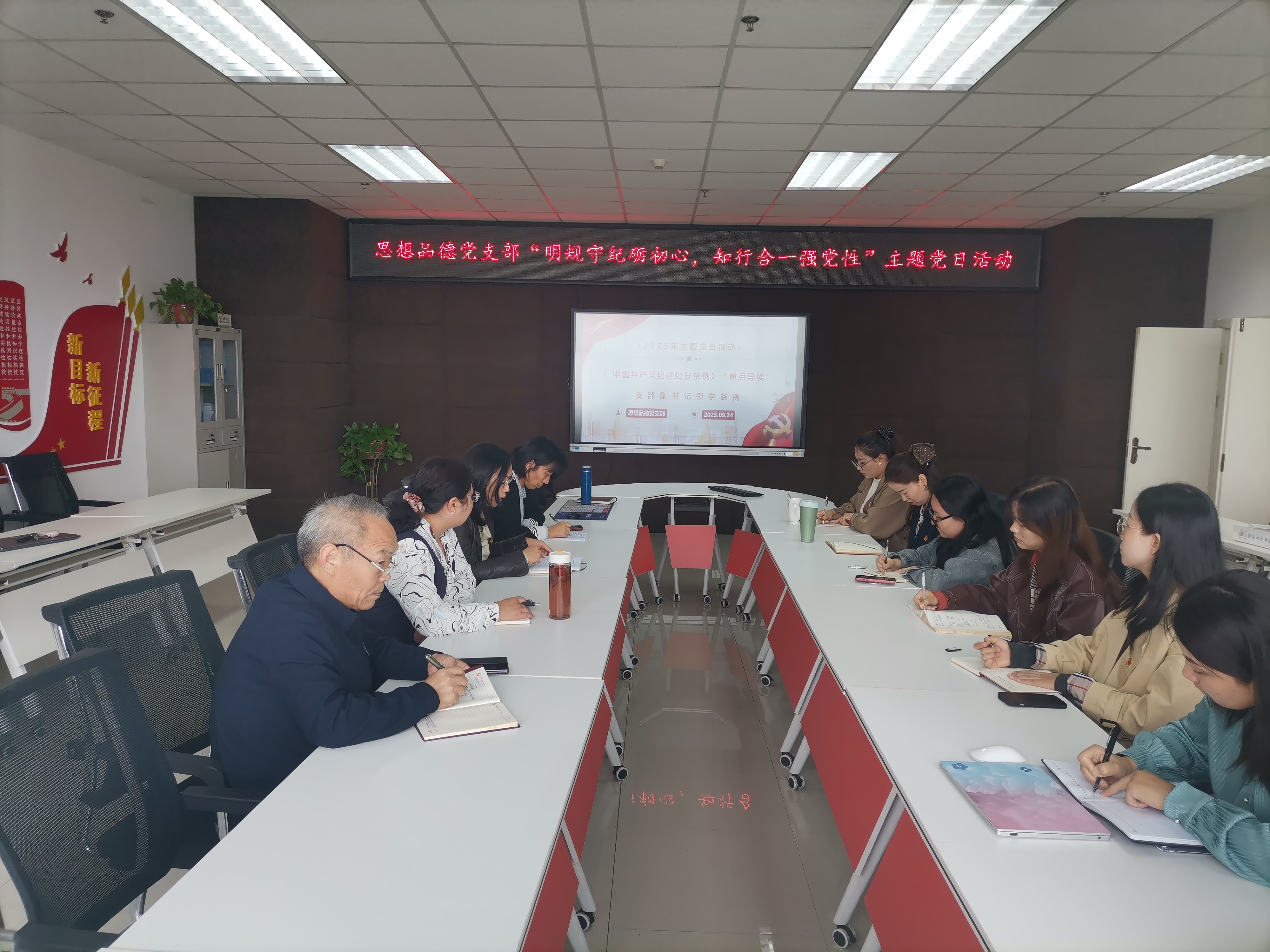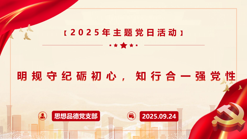 为进一步强化党员纪律意识、筑牢思想防线,9月24日上午,思想品德党支部在马院研习室组织开展“明规守纪砺初心,知行合一强党性”纪律学习教育专题党日活动。本次活动由支部副书记张雪侠主持,支部全体党员参加。