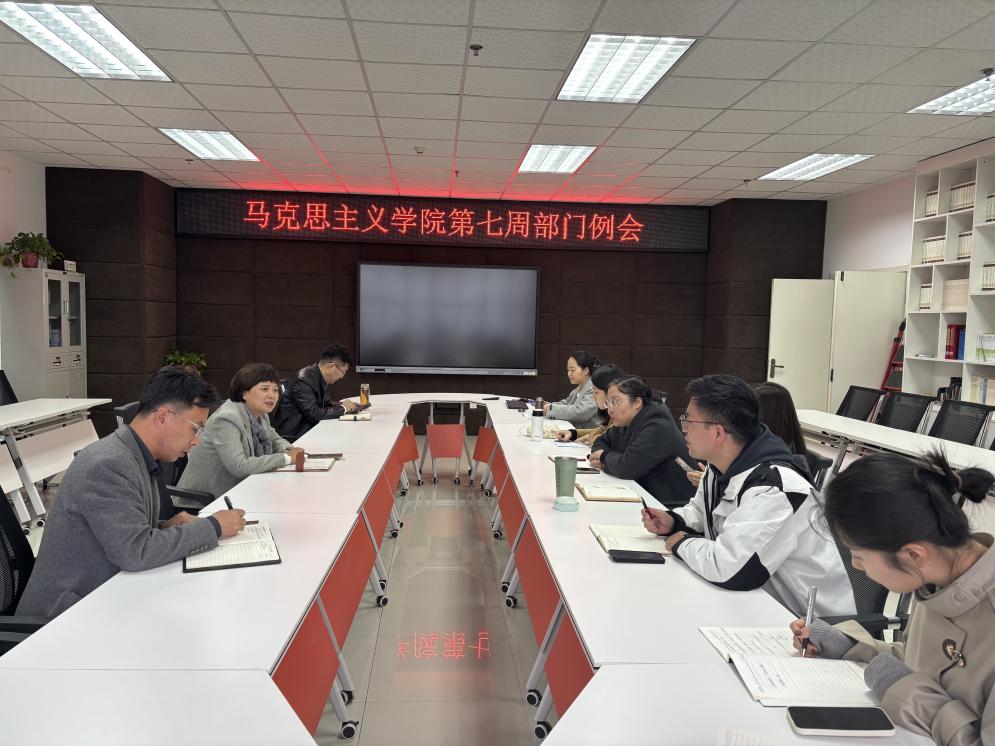 10月20日下午,马克思主义学院在高新校区研习室召开第七周部门例会,会议由院长李新萍主持,副院长孟红松,办公室主任翟强强,教研室主任李莉、卢娇娇、吕瑞琴,宣传负责人赵丽娜,工会委员吴婷、闫靖博,教学秘书弥婵、韩佳芮等参加了会议。