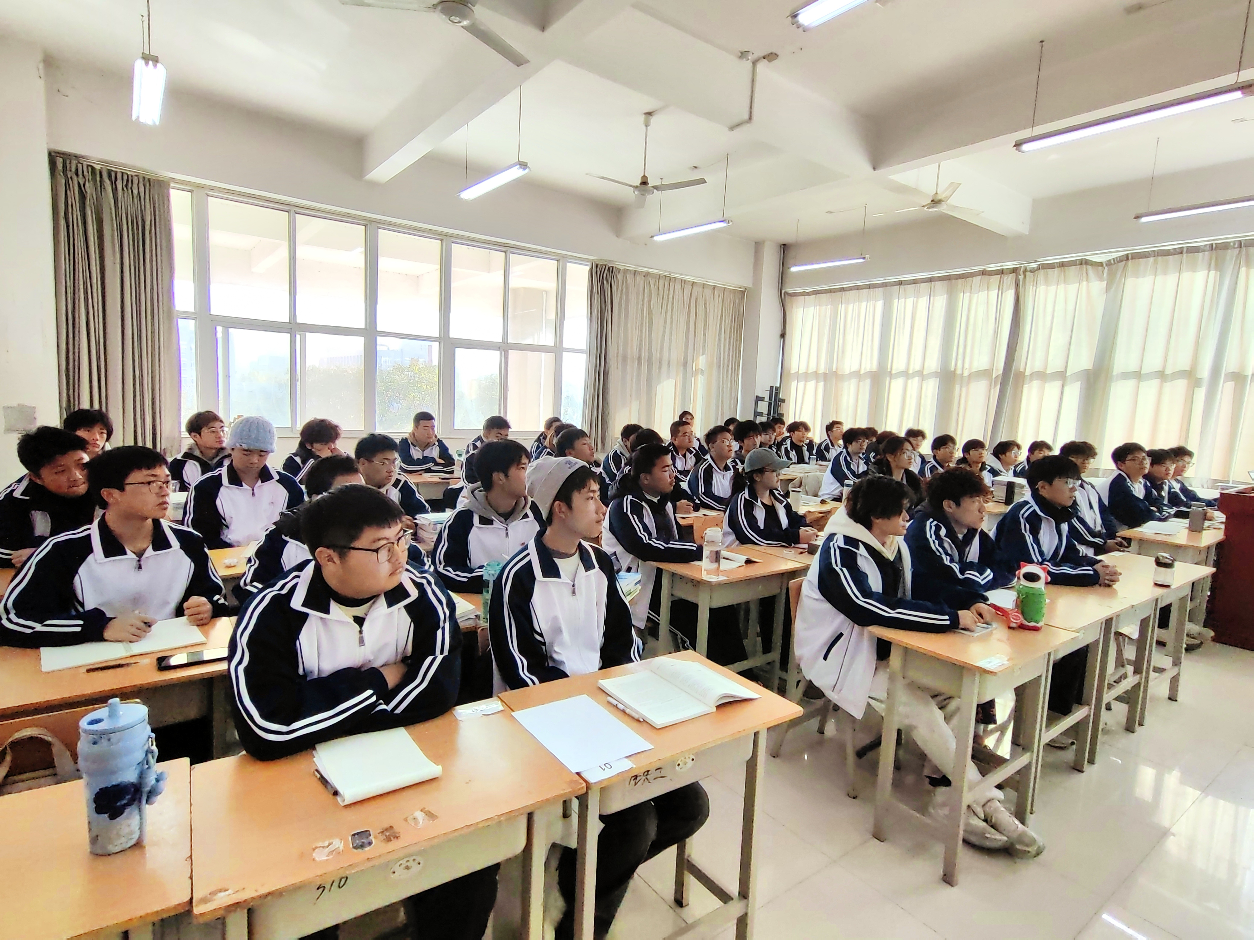 课堂上,张学钢紧密结合盾构专业的行业背景与当前国际形势,生动阐释了“全民同心”的信仰力量在历史与当下的深刻回响。他指出,在民族危亡关头,无数中国人不分阶级、年龄与地域,以“一寸山河一寸血”的信念共筑精神长城,展现出“天下兴亡、匹夫有责”的民族气节,这种精神不仅是抗战胜利的根本,更是中华民族自信自强的精神根基。他强调,铭记历史不是为了沉湎过去,而是为了汲取前行的力量,呼吁同学们将抗战精神内化于心、外化于行,把对先烈的缅怀转化为推动专业进步、服务国家建设的实际行动,努力成长为有理想、敢担当、能吃苦、肯奋斗的新时代盾构人才,为中国从“制造大国”迈向“制造强国”贡献青春力量。
