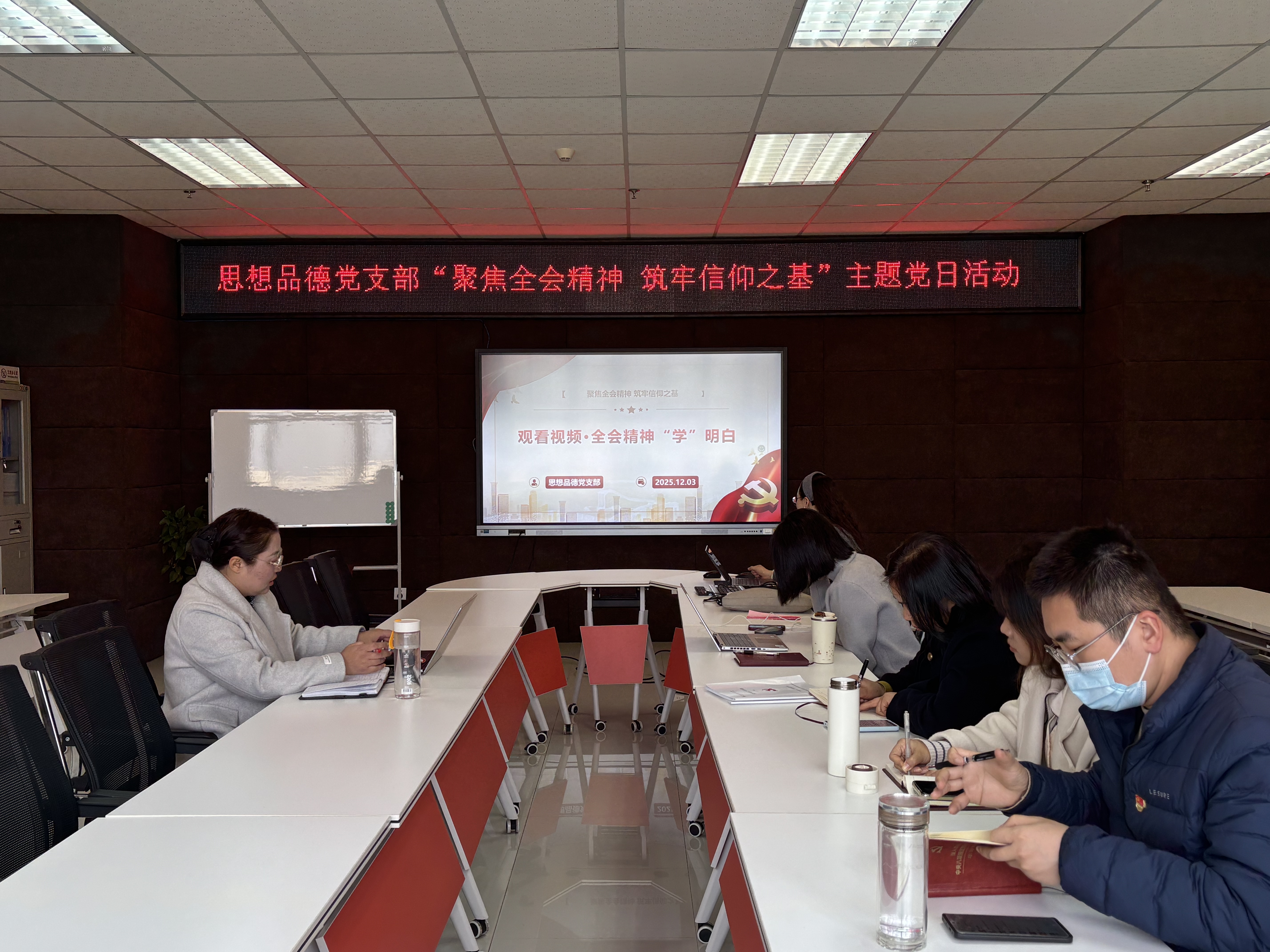 为深入学习贯彻二十届四中全会精神,切实把思想和行动统一到全会部署要求上来,12月3日下午,思想品德党支部在马院研习室组织开展“聚焦全会精神 筑牢信仰之基”主题党日活动,活动由支部书记李莉主持,全体教师党员参加。