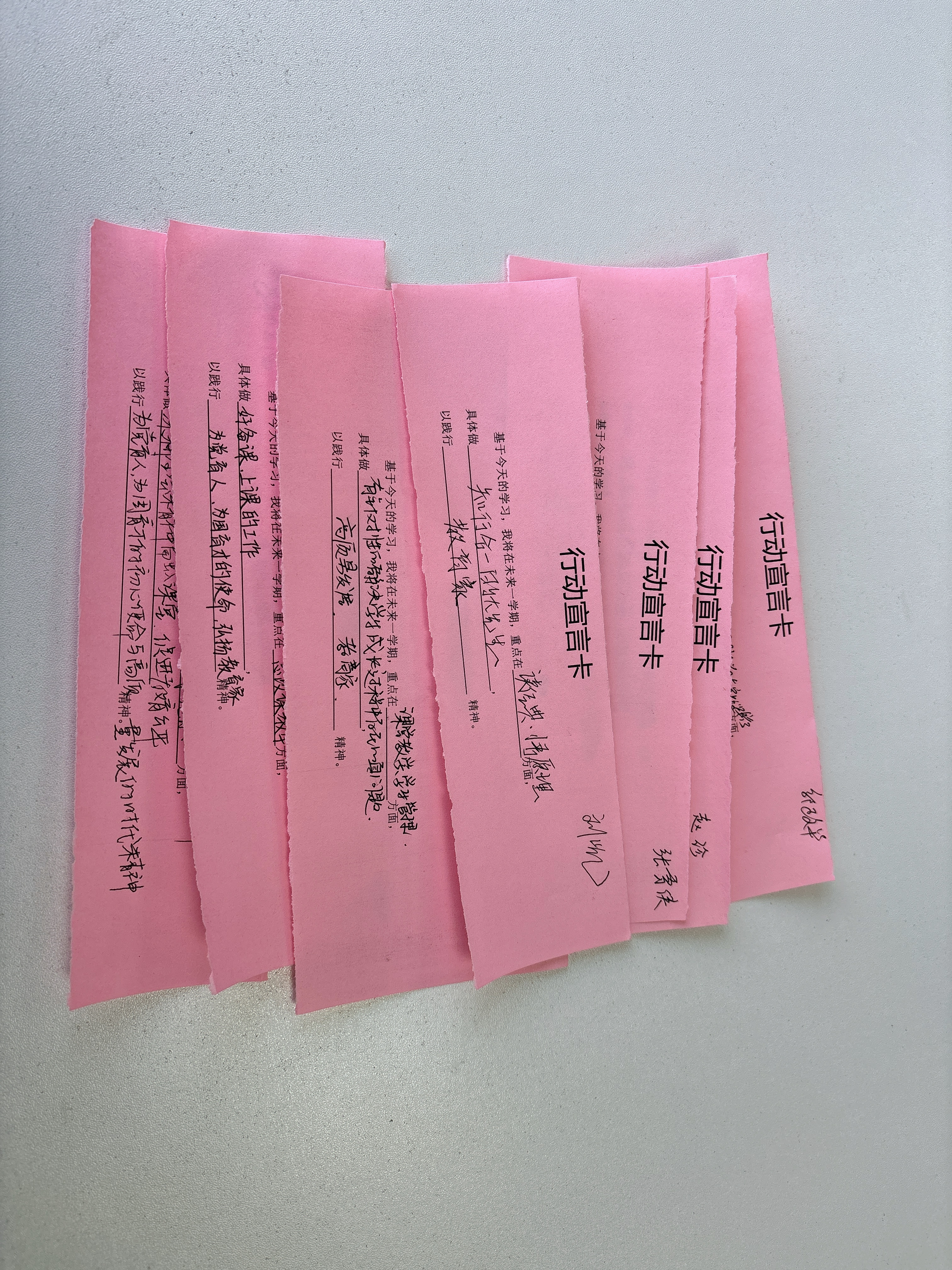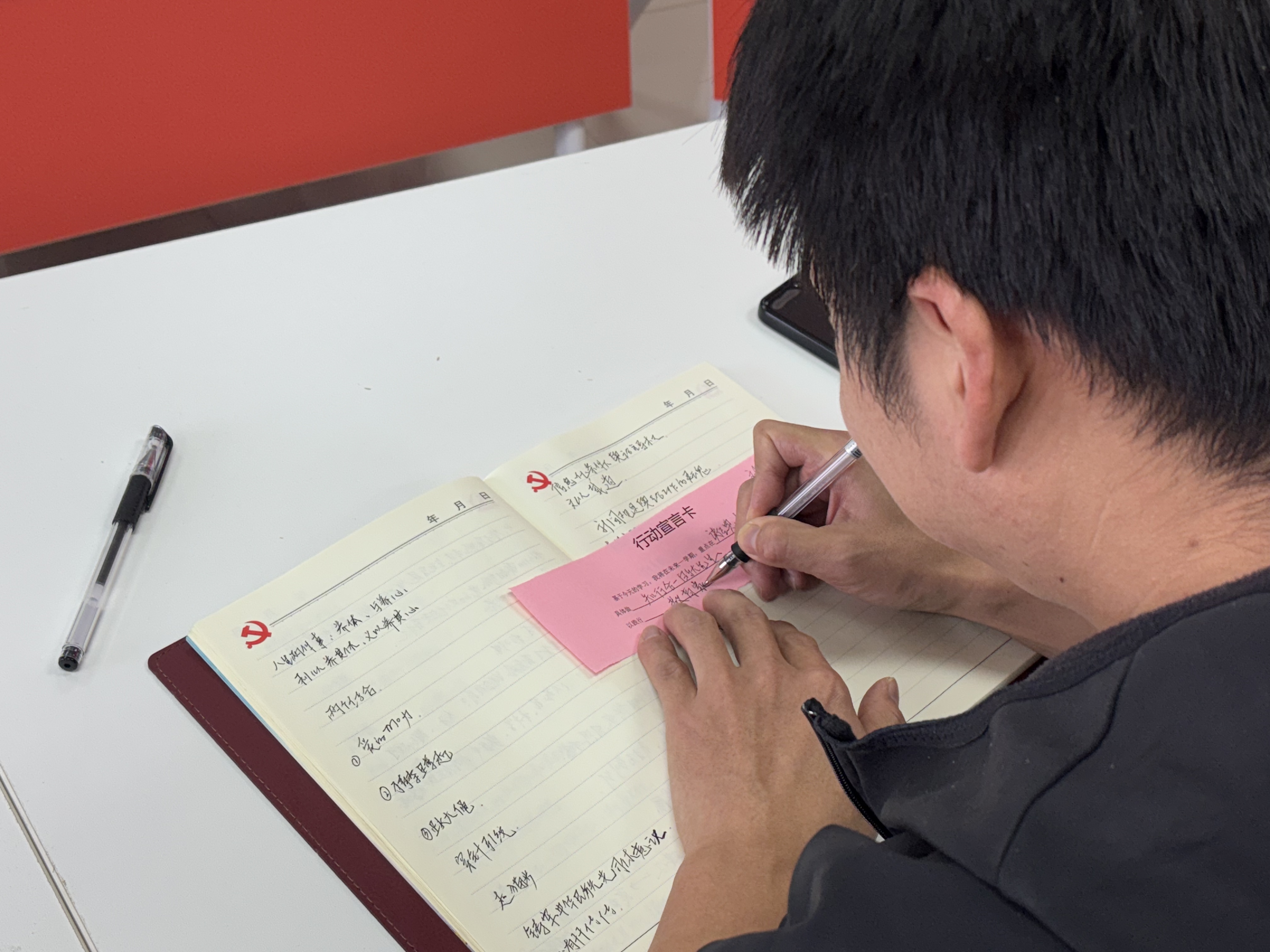 动规划环节中,每位党员认真填写“行动宣言卡”,明确今后一学期的践行方向与具体措施,切实将全会精神融入日常履职与实际工作。