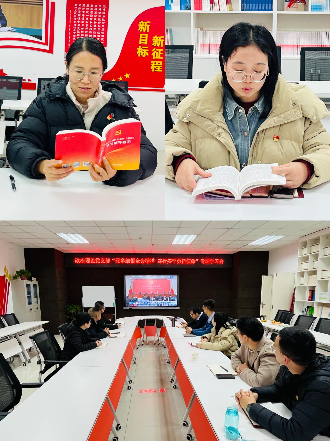 12月10日下午,政治理论党支部在高新校区马院研习室召开“学深细悟全会精神 笃行实干勇担使命”党的二十届四中全会精神专题学习会。会议由党支部宣传委员赵霄迎主持,全体党员教师参会。