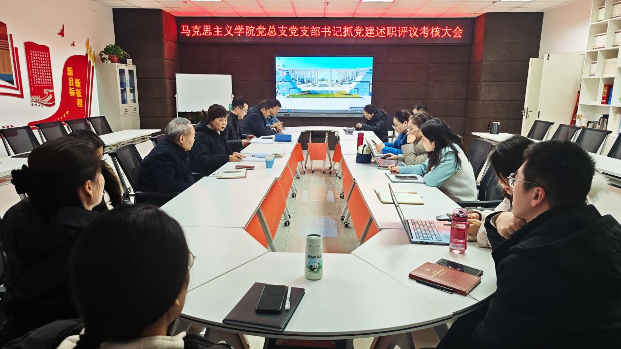 为深入贯彻落实新时代党的建设总要求,压紧压实基层党组织书记第一责任人职责,全面提升党建工作质量,1月5日下午,马克思主义学院党总支在马院研习室室召开2025年度党支部书记抓党建工作述职评议大会。全体党员教师参加会议。会议由党总支书记李新萍主持。