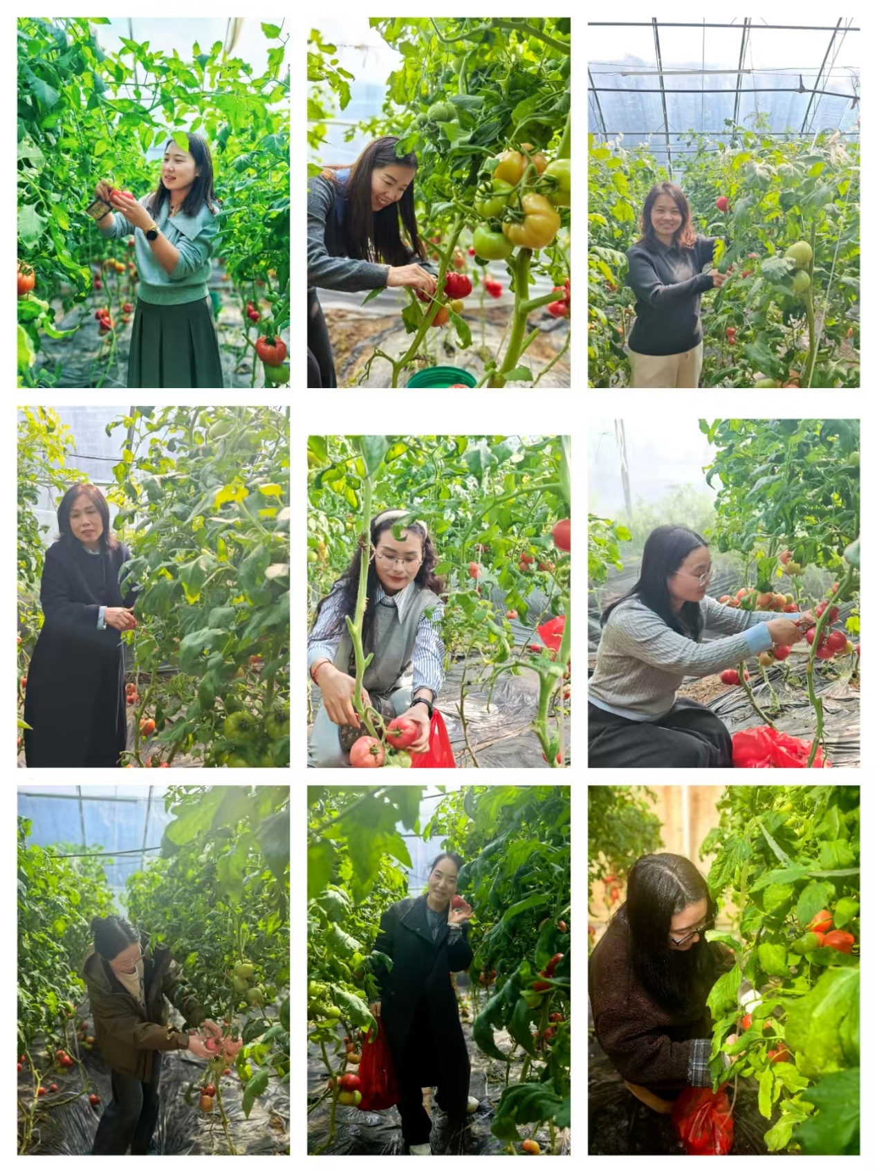 活动现场春意盎然、暖意融融。在采摘园区,大家漫步于生机勃发的田间地头,亲手采摘新鲜果蔬,在亲近自然、体验劳作的过程中放松身心、交流心得。欢声笑语伴着春日清风,老师们一边分享教学工作与生活感悟,一边感受乡村振兴带来的新变化、新风貌,在轻松愉悦的氛围中共度温馨美好的节日时光。