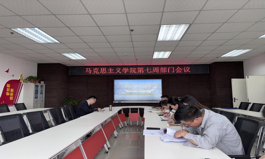 4 月 13日下午,马克思主义学院在高新校区研习室召开第七周部门工作例会。会议由副院长孟红松主持,教研室主任李莉、卢娇娇,工会委员闫靖博、吴婷,宣传人员赵珍及教学秘书弥婵、韩佳芮等相关人员参会。