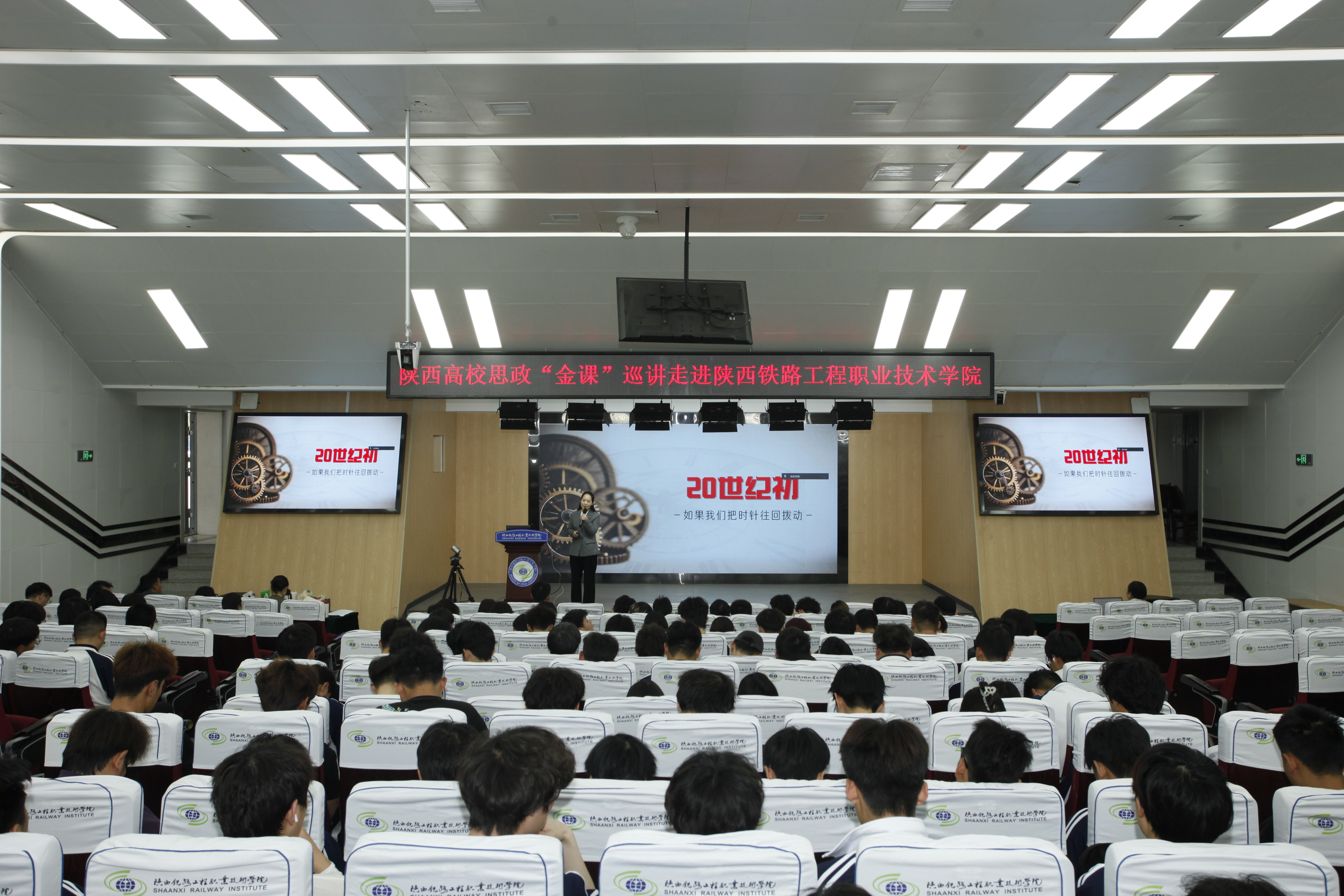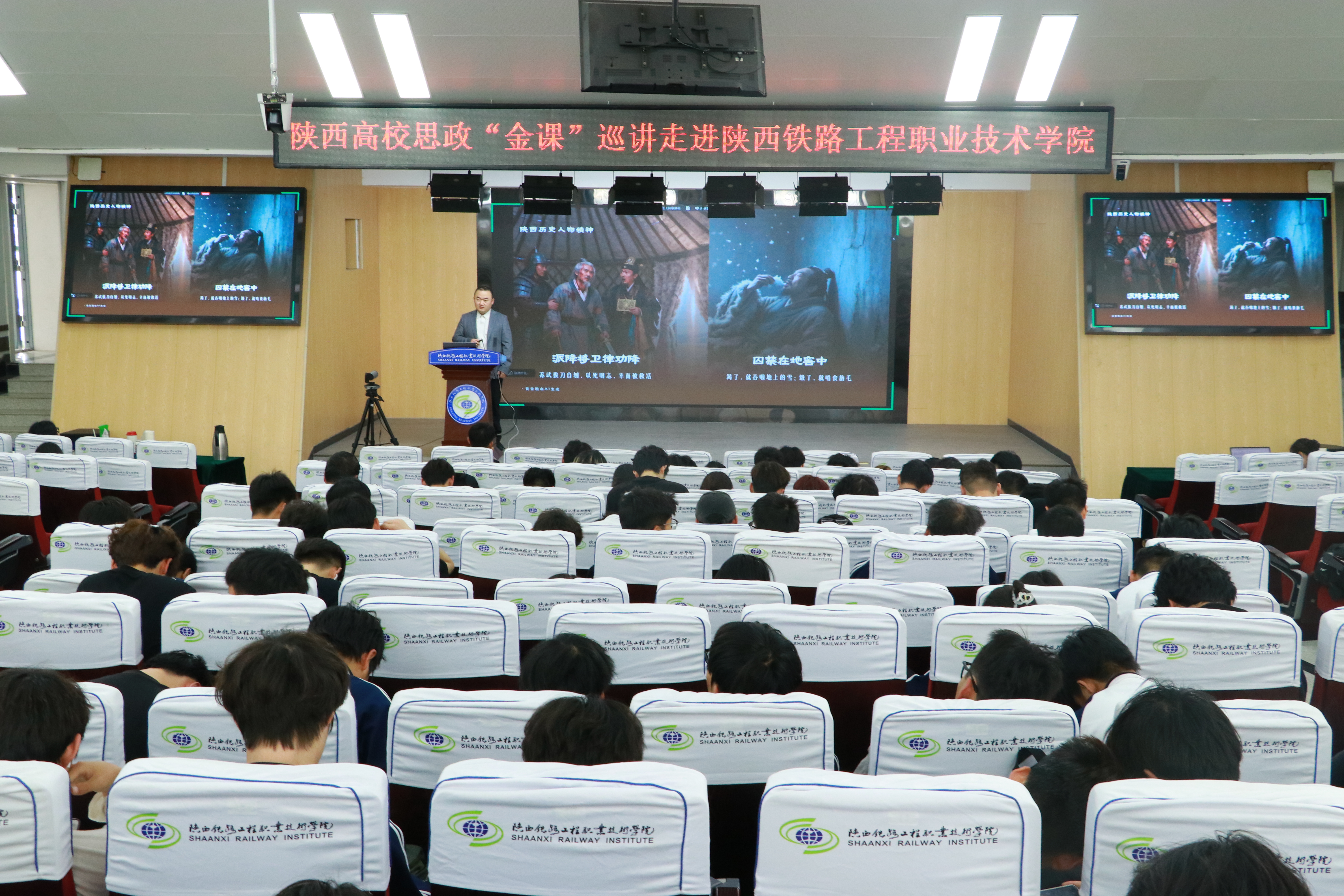 4月10日,陕西高校思政“金课”巡讲活动走进陕西铁路工程职业技术学院,报告会在高新校区诚信厅举行。本次巡讲邀请了陕西高校思政“金课”讲师团——陕西科技大学武端利、陕西铁路工程职业技术学院卢娇娇、西北大学张晋龙三位老师主讲。党委宣传部、马克思主义学院思政教师代表以及学生代表共400余人共同参加了此次报告会。本次活动由马克思主义学院副院长孟红松主持。