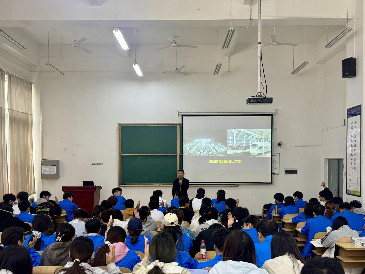 报告会上,武端利以《新时代的伟大变革》为题,以改革破局,高铁实现关键核心技术自主创新,从引进消化到领跑世界,体制机制与科技创新改革同步发力,不断激发发展动能。以发展提质,“八纵八横”高铁网四通八达,串联城乡、融通区域,带动产业升级与民生改善,为高质量发展提供坚实支撑。以稳定护航,高铁建设与运营始终坚守安全底线,保障出行畅通、民心安定,筑牢社会稳定基石。飞驰的复兴号,既是新时代伟大变革的缩影,也在改革、发展、稳定的协同推进中,为强国建设、民族复兴持续注入澎湃动能。