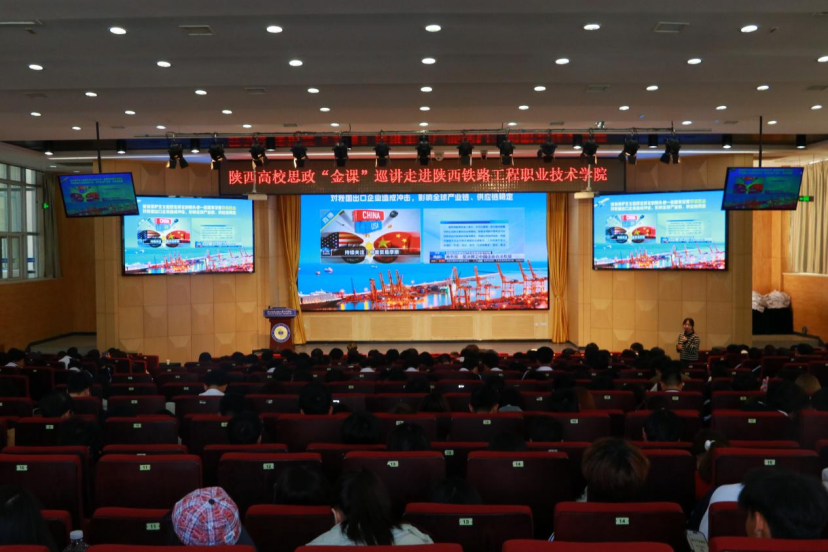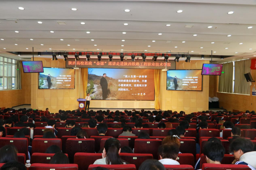 4月1日,陕西高校思政“金课”巡讲活动走进陕西铁路工程职业技术学院,报告会在高新校区博爱厅举行。本次巡讲邀请了陕西高校思政“金课”讲师团——咸阳师范学院浦创国、西安航空职业技术学院彭艳、西安财经大学李建国三位老师主讲。党委宣传部、马克思主义学院思政教师代表以及学生代表共400余人共同参加了此次报告会。本次活动由马克思主义学院办公室主任翟强强主持。