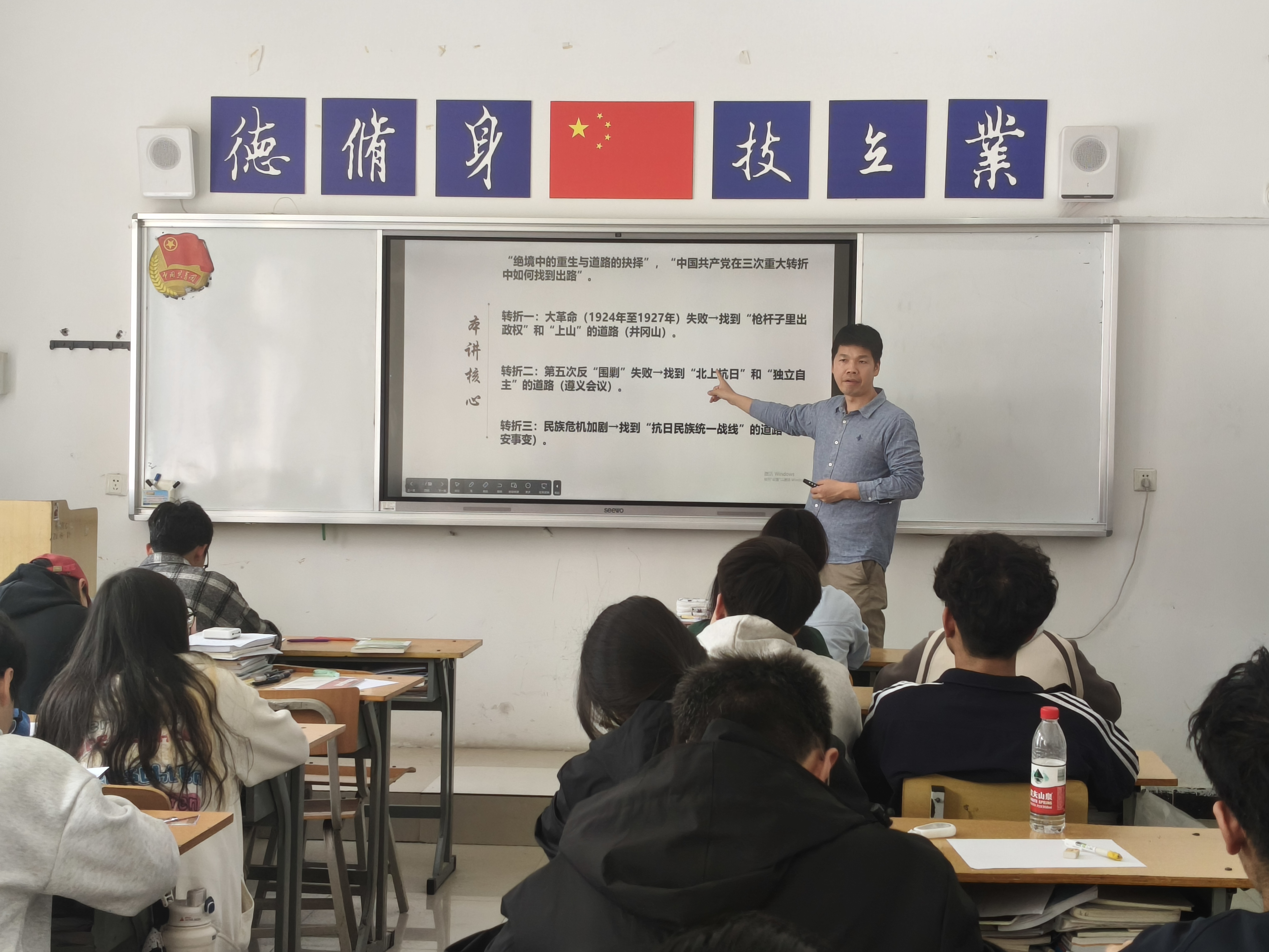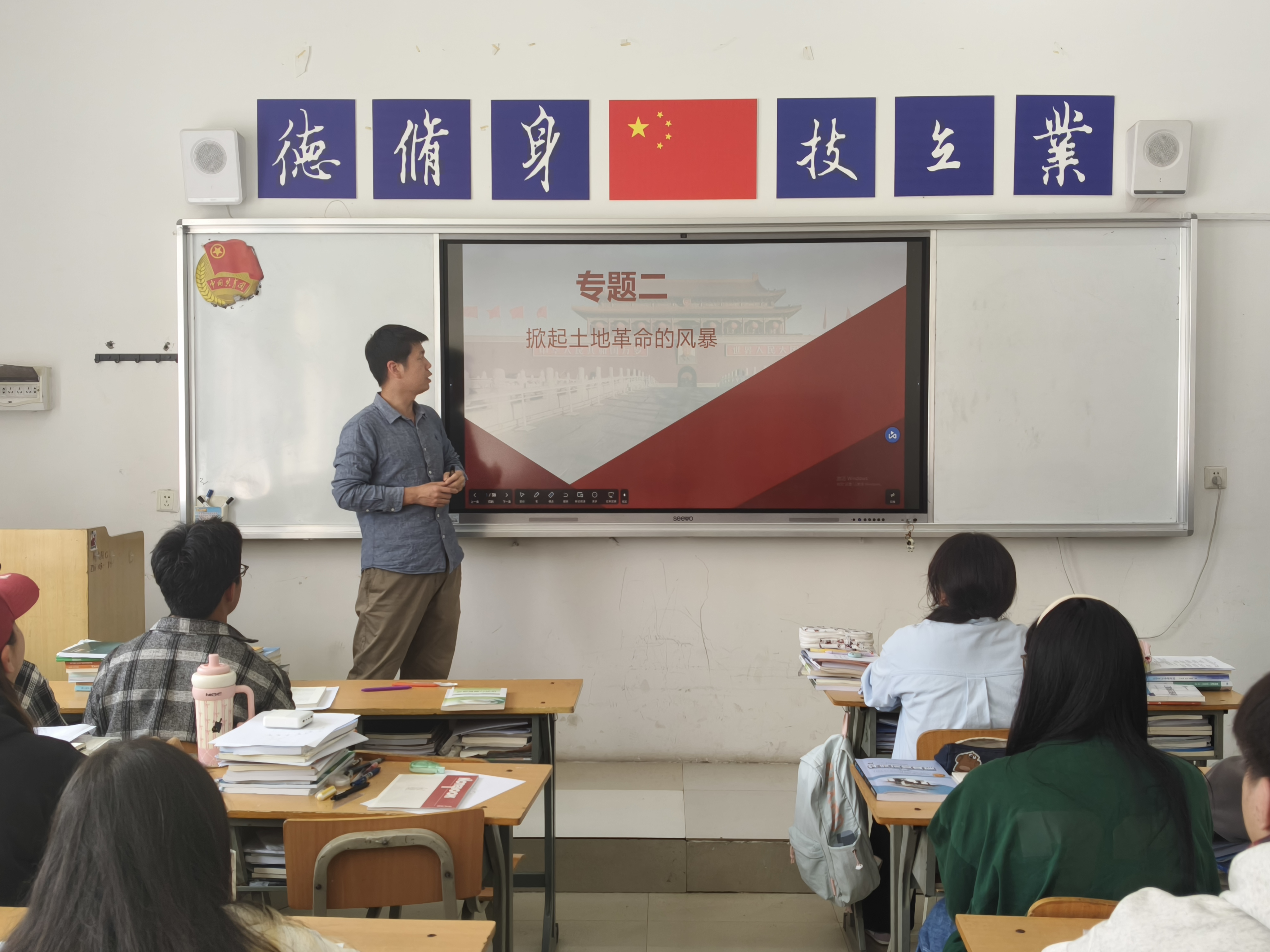 讲座中,刘凯围绕武装斗争反抗国民党的反动统治、毛泽东和中国革命新道路的开辟、农村革命根据地的建设与不同时期的土地政策等三方面内容展开讲解。他结合生动的讲述与珍贵的历史图片,带领学生重回烽火连天的革命岁月,深刻感悟中国共产党人不屈不挠的革命精神,系统把握党探索革命道路的艰辛历程,深入理解不同时期土地政策的重要影响与深远意义。
