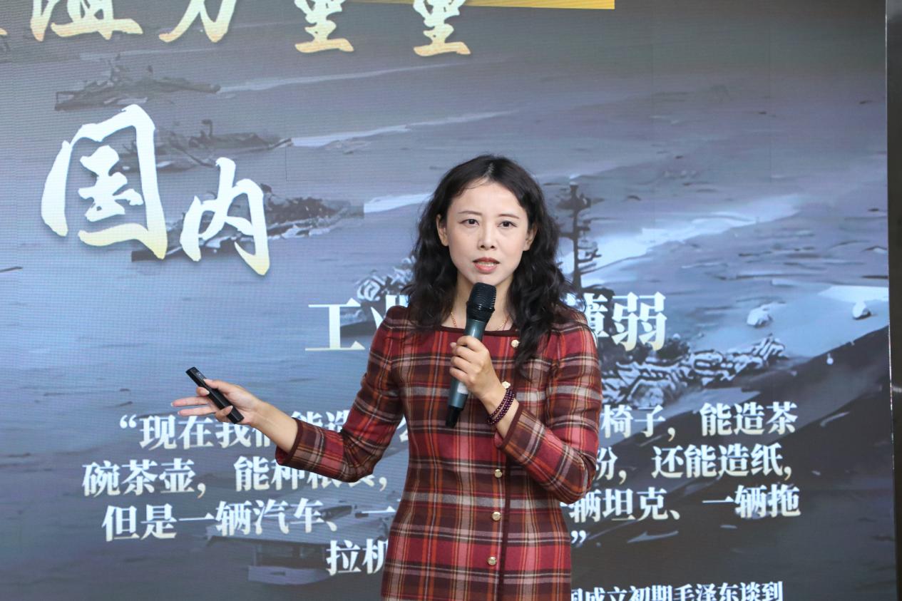 程丽玥以《西迁精神的时代传承》为题,围绕三个方面深刻阐释红色精神的时代内涵。她回顾了新中国成立后“向科学进军,建设大西北”的时代号召,讲述了一大批知识分子响应国家号召,奔赴西北、扎根西部,在艰苦条件下投身科教与建设事业的奋斗历程;同时介绍了建设大西北过程中涌现出的先进人物代表,他们胸怀大局、无私奉献,将个人理想融入国家发展,用实干诠释了爱国担当;最后立足新时代,号召大家传承延安精神与西迁精神,坚定理想信念、立足本职岗位,勇担时代使命,争做西迁精神新传人,让红色血脉代代相传。