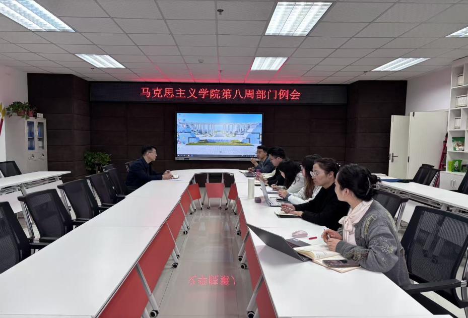 4月20日下午,马克思主义学院在高新校区研习室召开第八周部门工作例会。会议由副院长孟红松主持,办公室主任翟强强、教研室主任李莉、卢娇娇、吕瑞琴、工会委员闫靖博、吴婷,宣传人员赵珍及教学秘书韩佳芮等参会。