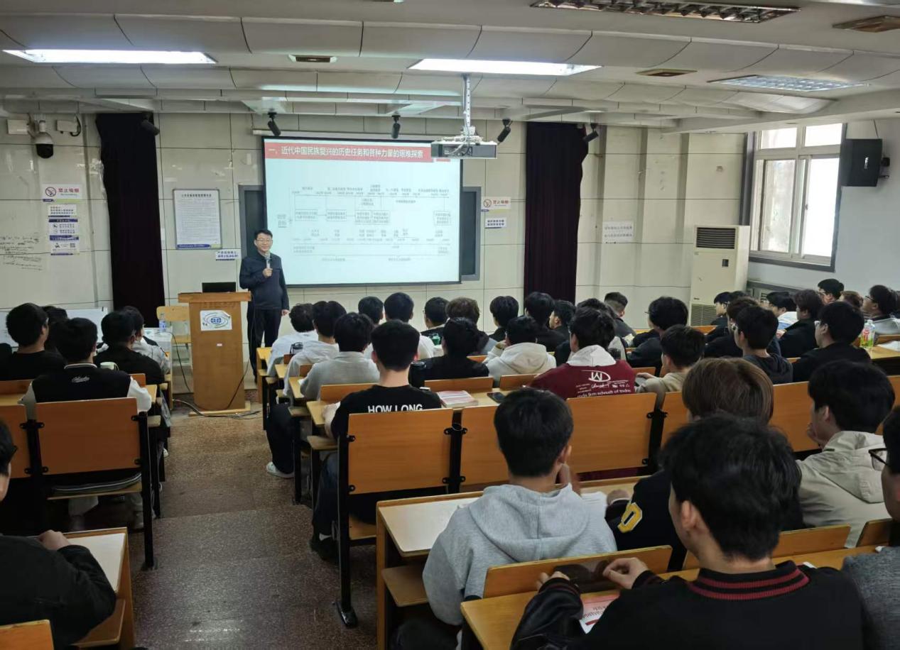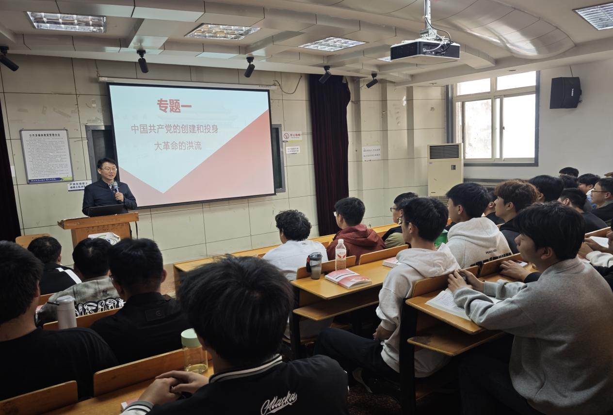 讲座中,孟红松主要讲述了近代中国民族复兴的历史任务和各种力量的艰难探索、五四运动和马克思主义在中国的传播、中国共产党的成立和民主革命纲领的制定、第一次国共合作和大革命高潮的兴起、北伐战争和工农运动、国共合作的破裂和大革命的失败等六个方面的内容,带领同学们回顾近代以来中华民族沦为半殖民地半封建社会,备受帝国主义列强欺凌的历史,分析近代以来中华民族的仁人志士寻求救国救民的种种尝试之所以失败的最主要原因是因为没有科学的理论做指导,缺少由科学的理论武装起来的政党的领导,指出中国共产党的成立是开天辟地的大事变,深刻改变了近代以后中华民族发展的方向和进程,深刻改变了中国人民和中华民族的前途和命运,深刻改变了世界发展的趋势和格局,勉励同学们牢记党的二十大所提出的党的中心任务,自觉将个人发展融入到党和国家事业中来,在“技能成才、强国有我”的大舞台上绘就自己的出彩人生。